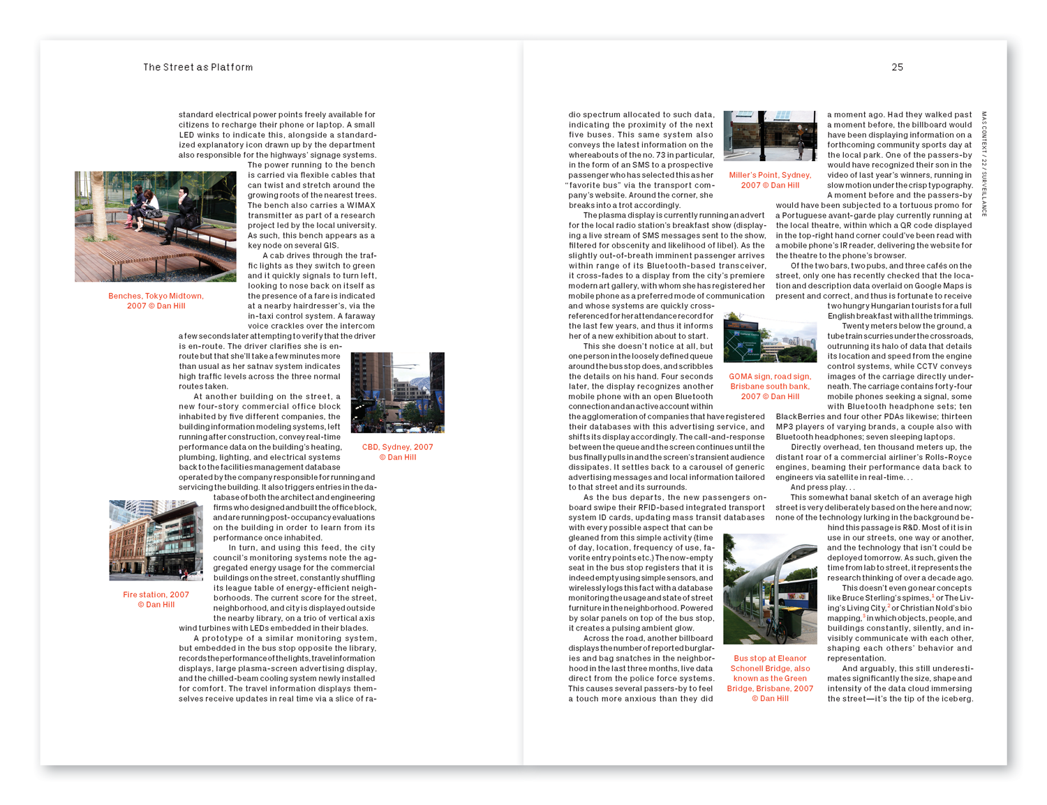 While at Thirst I had the pleasure of working on the quarterly art and architecture magazine Mas Context. The magazine is set up to have contributors submit essays or projects centered around a specific theme. Each essay is then given to a designer to layout. Thirst provides the guidelines and template for the designers but each article takes on its own personality. This issue, based around the topic of surveillance, featured 14 designers.